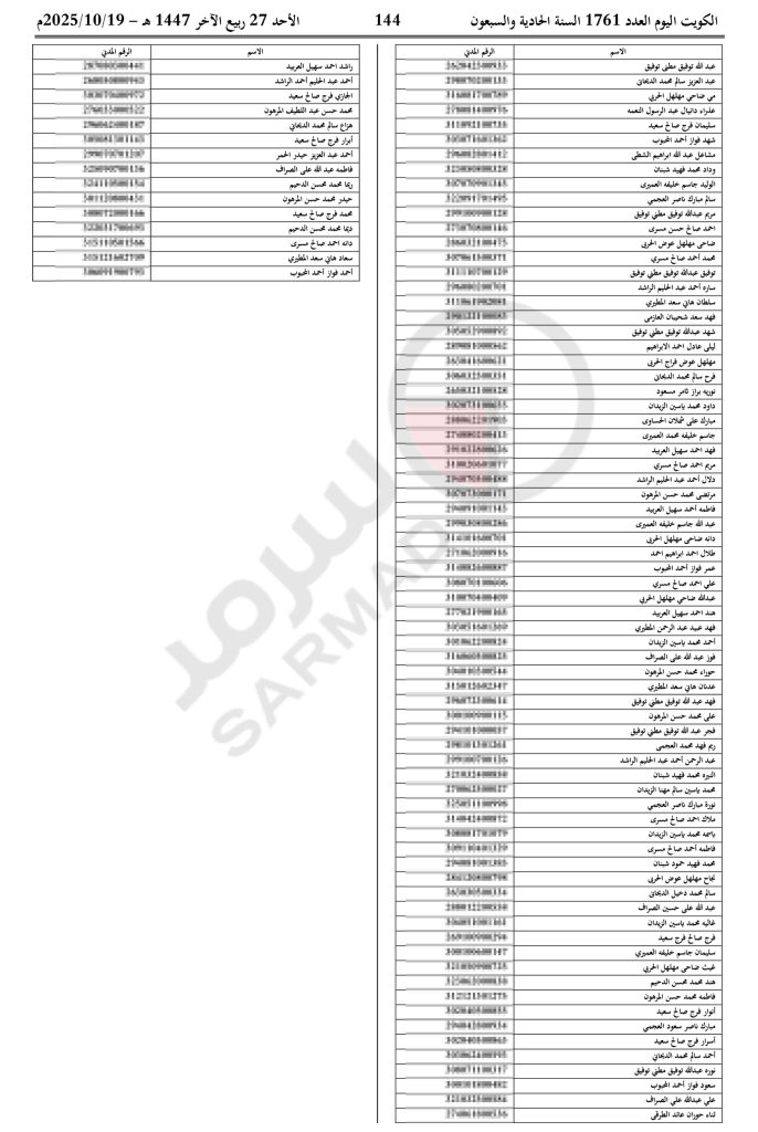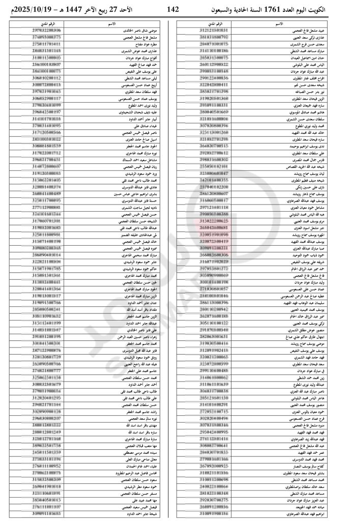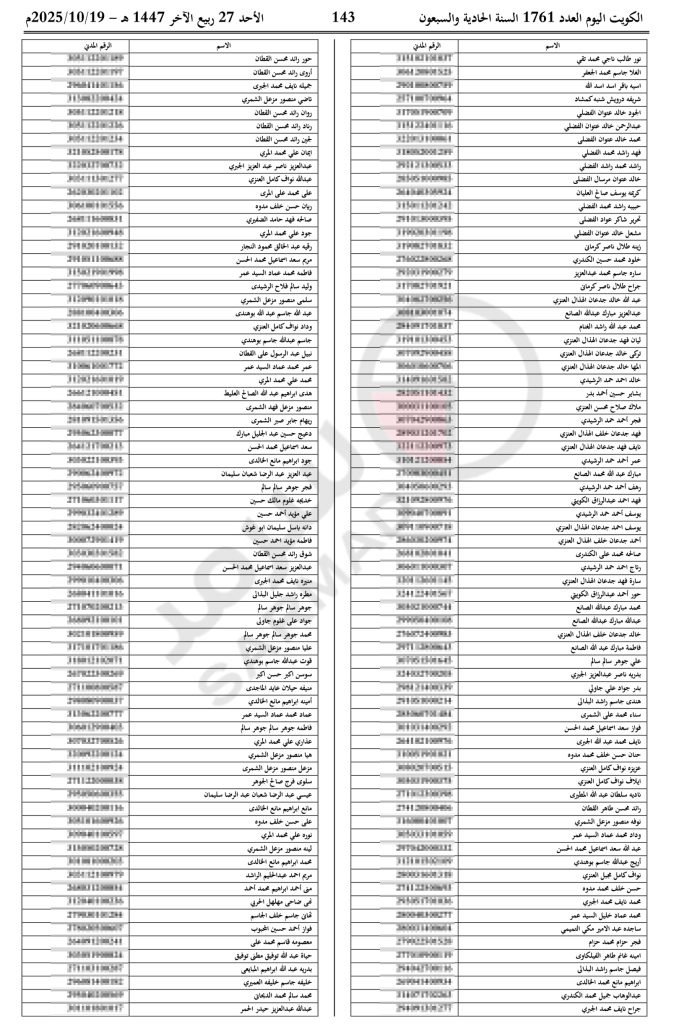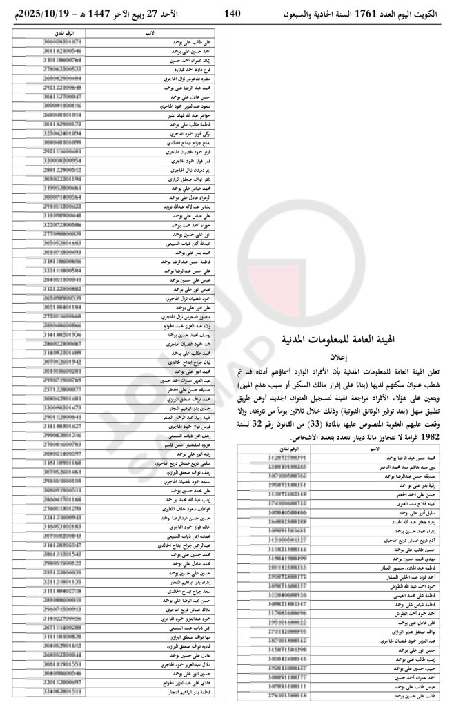 ونشرت الهيئة في عدد الجريدة الرسمية «الكويت اليوم» أسماءهم، مؤكدة أنه تم شطب عناوين سكنهم بناءً على إقرار مالك السكن أو بسبب هدم المبنى.