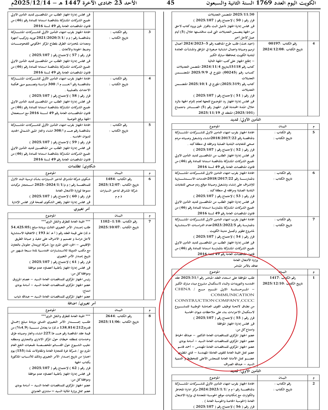 وافق الجهاز المركزي للمناقصات العامة، على طلب وزارة الأشغال العامة، باستثناء عقد الهندسة والتوريدات والبناء لاستكمال مشروع ميناء مبارك الكبير المرحلة الأولى، المبرم مع الصين، من نطاق لائحة القوى العاملة الوطنية للمشروع لاستكمال الإجراءات بناء على ملاحظات ديوان المحاسبة.