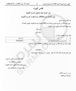 ونصّ القرار الأول، الذي حمل الرقم 21/4 لسنة 2026، على سحبها من امرأة واحدة.